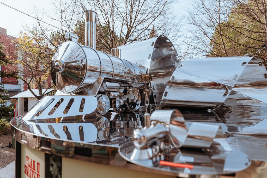 Izradu središnje skulpture i ove godine potpisuje šibenska mreža kulturne suradnje Kolektiv 4B. Na osmišljavanju, izradi i postavljanju je sudjelovalo dvadesetak ljudi iz šibenskih udruga, obrta, ustanova i tvrtki. Idejno rješenje i koncept izradili su Branka i Krešimir Grubić, a vremeplov je grafički oblikovala Lucija Belamarić. Skulptura je izrađena u tvrtki Metal Produkt na Podima, a izradom je koordinirao Josip Bačelić.