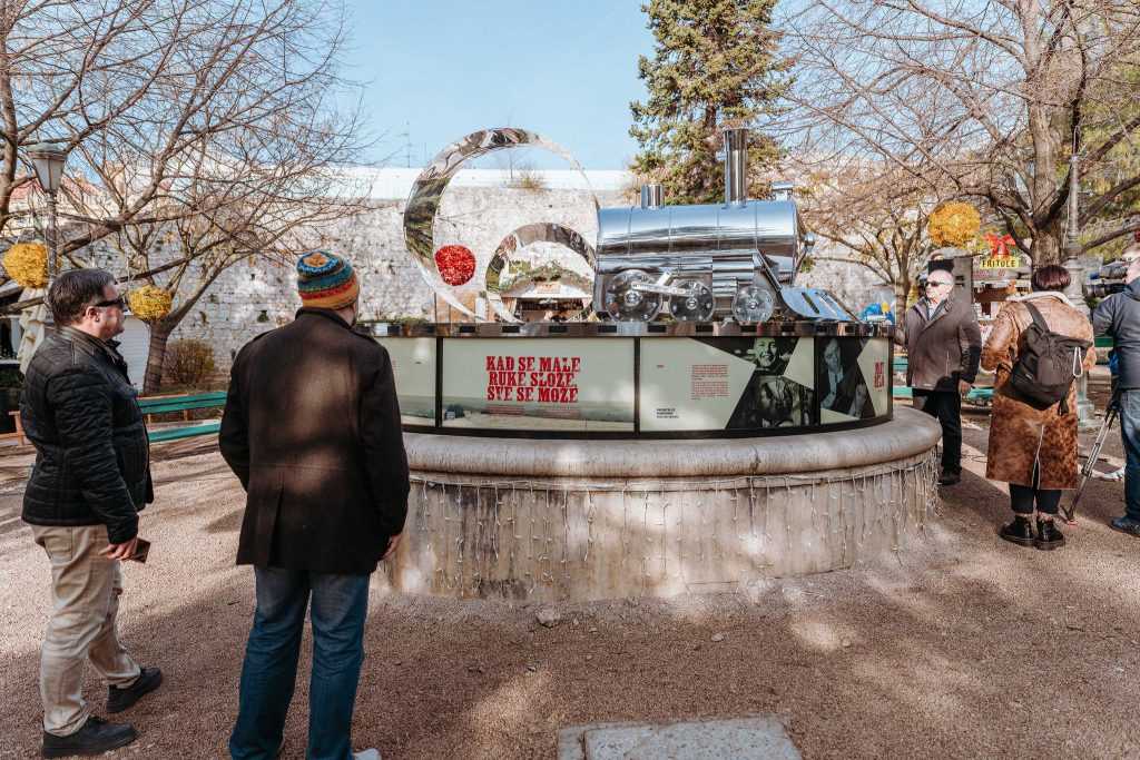 Središnja skulptura Adventure posvećena je filmu ''Vlak u snijegu'' i njegovom redatelju, Šibenčaninu Mati Relji